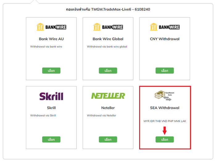 คลิก เลือก ช่อง “ SEA Withdrawal ”