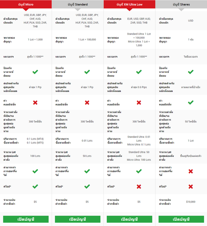 *** ดูข้อมูลเพิ่มเติมประเภทของบัญชีซื้อขาย XM คลิก